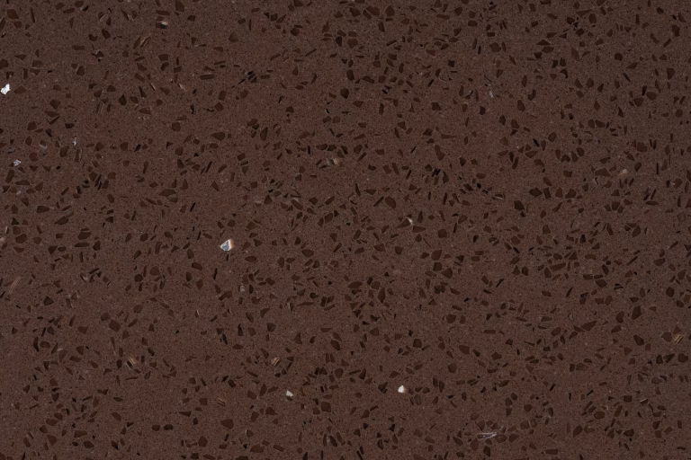 The Topaz Mosaic slab is a luxurious surface characterized by a rich chocolate brown base, interspersed with glimmering fragments of deeper brown, black, and occasional reflective mineral specks. Its polished finish enhances the visual depth and creates a dynamic interplay between matte and shine, much like a mosaic crafted from natural gemstones. The overall tone evokes warmth and elegance, making it an excellent choice for interiors seeking a sophisticated and earthy palette.