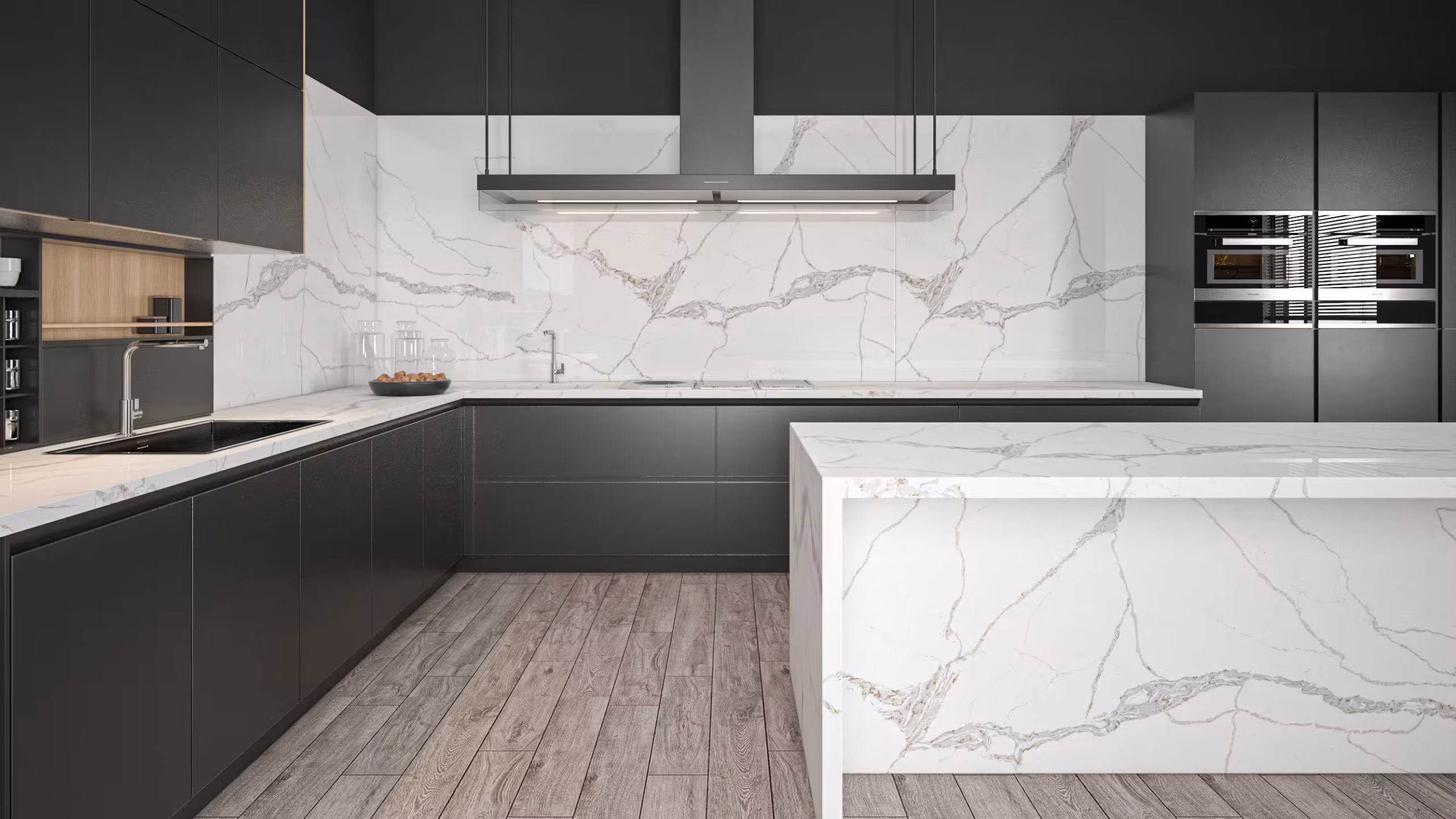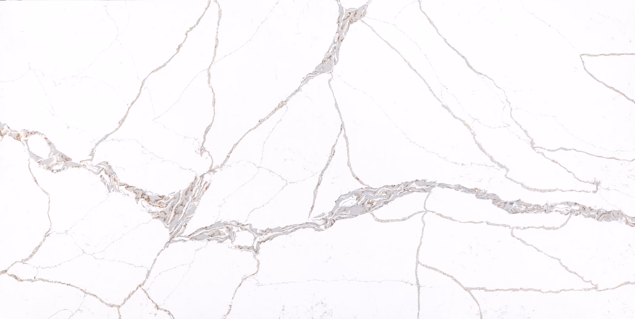 Frosty Calacatta is a bold and dramatic quartz surface that redefines classic luxury with a contemporary edge. Set against a frosty white background, this slab features striking, oversized veining in shades of cool grey, charcoal, and hints of taupe. The veins have a dynamic, fluid structure—some richly filled with intricate marbling and mineral-like textures, creating a visually captivating and high-contrast look.